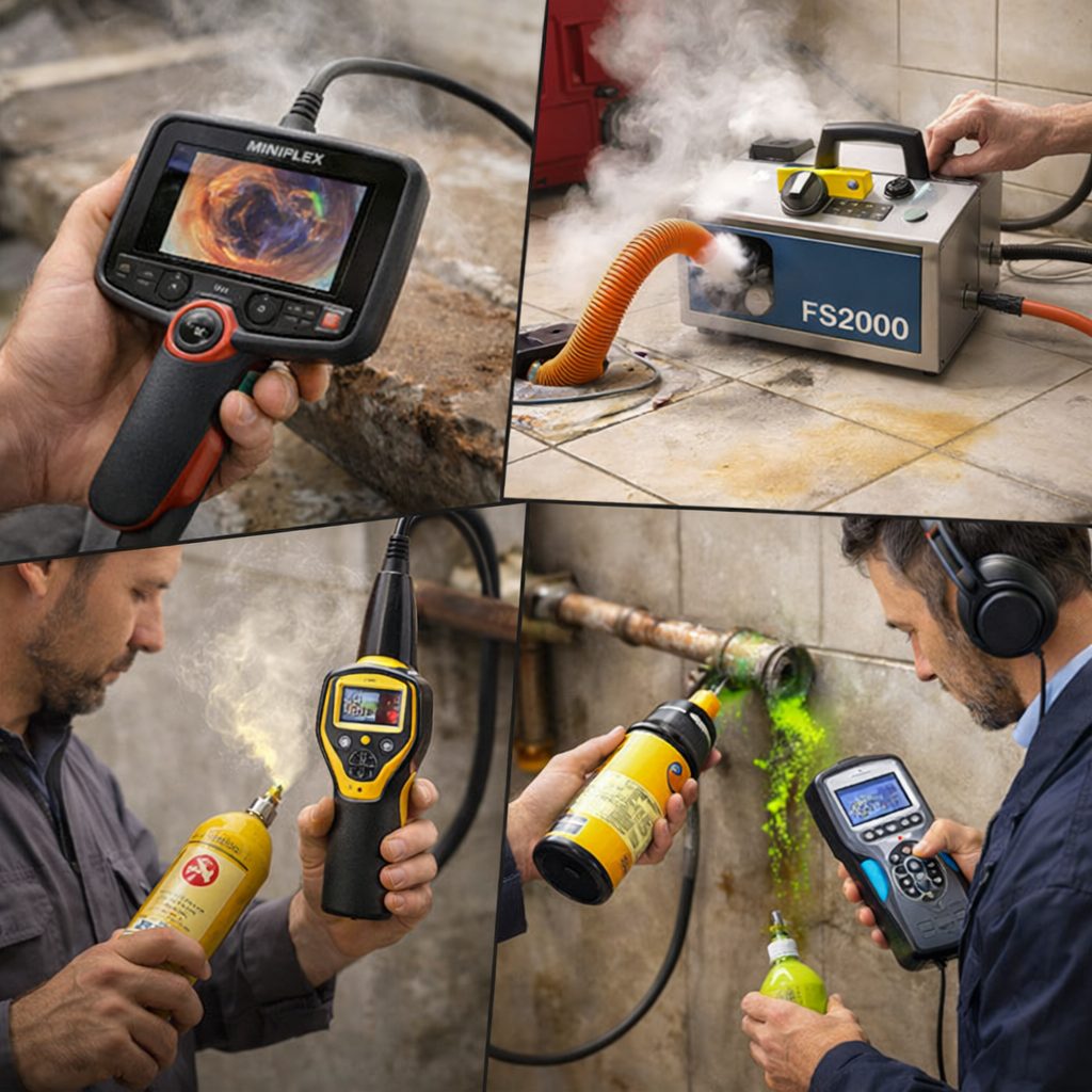 Utilisation de caméras d’inspection, d’ultrasons, de gaz traceur ou encore de fumigation pour localiser les fuites rapidement et sans devoir engager des coûts de destruction pour trouver la fuite.
